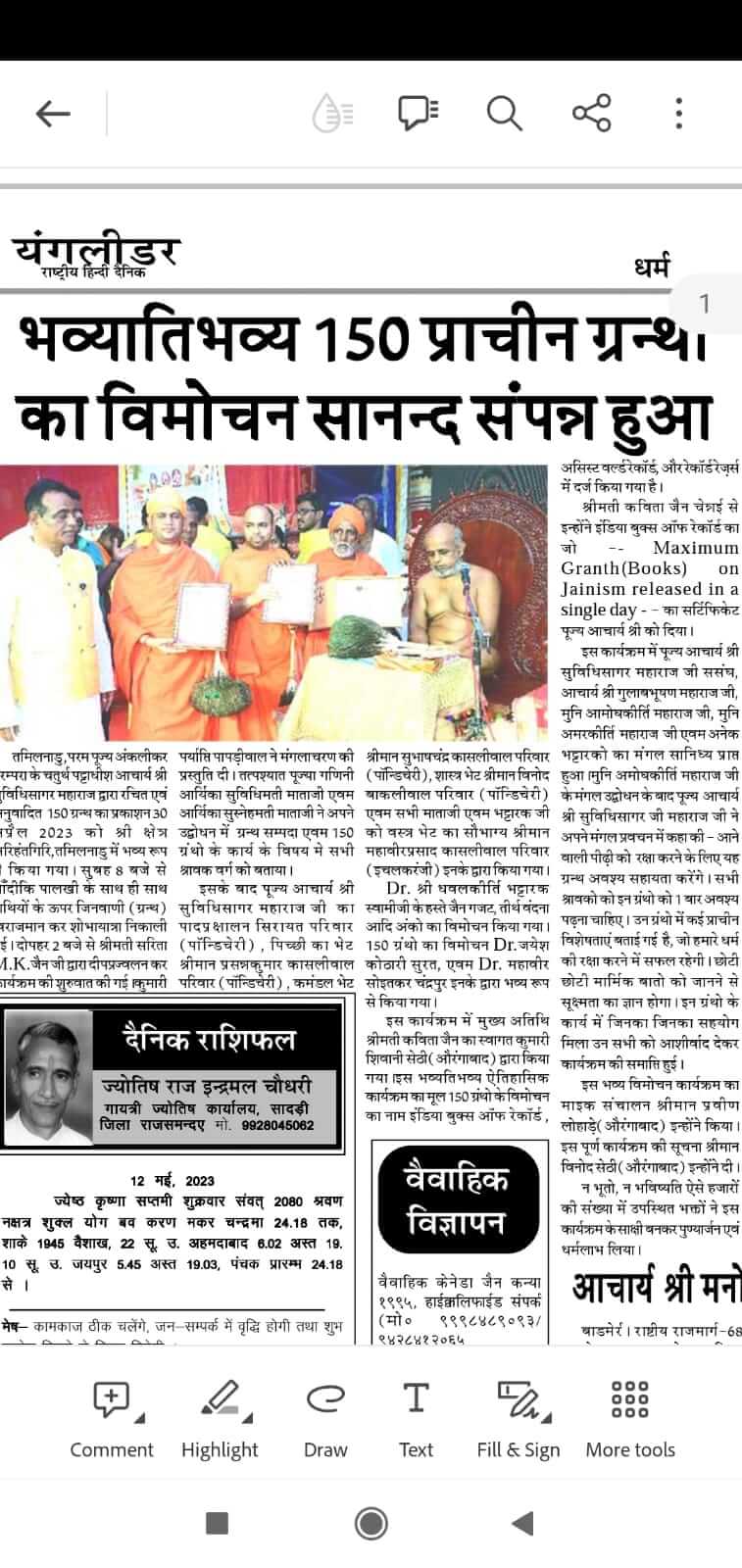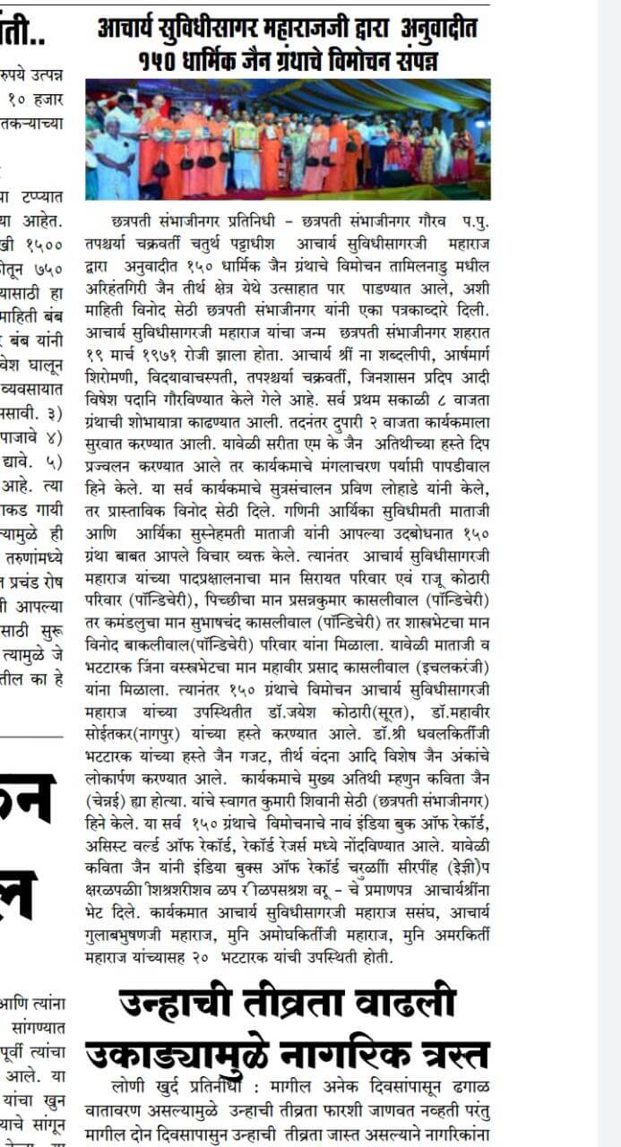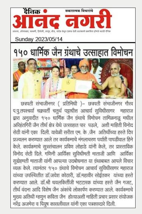 Acharya Shri Suvidhi Sagar Ji Maharaj is currently present at Arihantgiri Tiruannmalai, Tamilnadu.